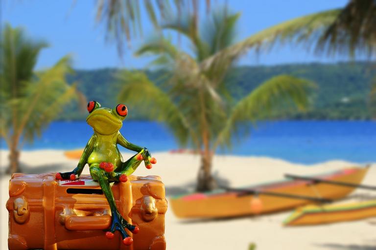 Keywords: holiday luggage palm trees beach frog funny cute travel go away packaging holidays departure travellers piece of baggage tourism