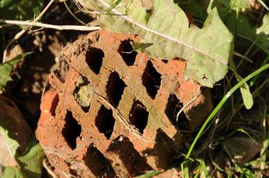Keywords: hollow tile building rubble holes brown black brick pattern