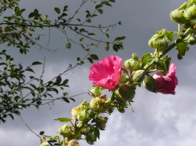 Keywords: hollyhock alcea rosea pink rosea flower bloom garden mallow summer alcea plant botany