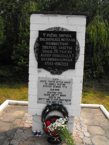| Keywords: Holocaust in Pinsk 3d.jpg ru Памятник в айоне бывшей де евни Посеничи Посяничи на ок аине Пинска на месте массовых убийств ев еев Пинска и военнопленных в 1941-42 годах а этом месте были убиты 8000 ев еев-мужчин из Пинска аходится на выезде из Посенич в нап авлении Пинска по до оге Р6 слева от шоссе пе ед де евней Галево 2012-07-12 own Avner 52 10 09 8 N 26 05 21 5 E heading E cc-zero Holocaust in Pinsk Ghetto Pinsk Uploaded with UploadWizard | ||||