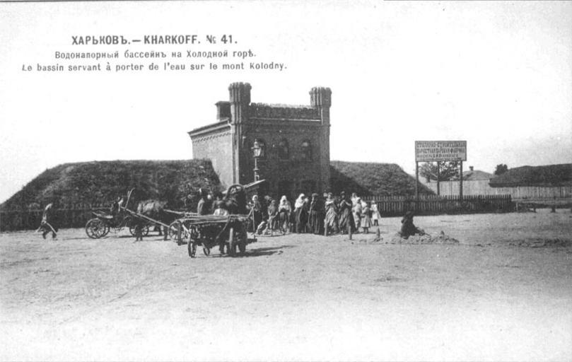 | Keywords: Holodnaya Gora in Kharkov, Bassein.jpg Ekatirinoslavskaya Street in Kharkov Holodnaya Gora Bassein Russian Empire Postcard Холодная го а в Ха ькове в конце 19 века Окончание Екате инославской улицы Самая высокая точка тогдашнего го ода - бассейн аходился несколько дальше нынешнего ста ого Холодного ского ынка нап отив че ез Екате инославское шоссе от Озе янской це кви Водокачальное здание со всеми п инадлежащими ему ст оениями выст оено в отведенном для надобностей водоп овода месте в го одском Ка повском саду Главный запасной езе вуа на Холодной го е каменный вмещающий 80 000 веде воды составляет самую высшую точку го ода Путеводитель по г Ха ькову 1881 год A reproduction of post cards dated 19th century scan for original paper postcard // еп одукция почтовой ка точки конца XIX века скан бумажной отк ытки 1890s Russian Empire Post; на отк ытке не указан PD-Old PD-RusEmpire Postcards of Kharkiv Ekaterinoslavskaya street in Kharkiv Unidentified year in Kharkiv XIX century |