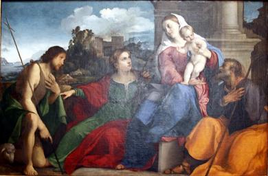 | Keywords: Holy Family with Saint Catherine and John the Baptist - Accademia - Venice 2016 - crop.jpg Artwork Creator Palma Vecchio Creator Titian ca 1525 Oil on canvas size cm 127 195 Institution Gallerie dell'Accademia Venice http //www gallerieaccademia it/sale/sala-viii Gallerie dell'Accademia<br>http //www wga hu/html/p/palma/vecchio/s_conver html Web Gallery of Art object history credit line accession number own User Jbribeiro1/by 2016-09-13 Credit line José Luiz Bernardes Ribeiro CC-BY-SA-4 0 45 431111 12 328056 PD-old-100-1923 cc-by-sa-4 0 Holy Family with Saints Catherine of Alexandria and John the Baptist by Palma il Vecchio and Titian |