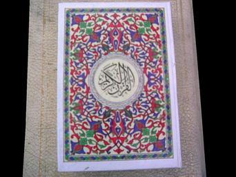 Keywords: Holy Quran from Damascus.jpg Front cover of a Holy Qur'an published in Damascus I took it with my Nokia E50 2007-03-01 Qasamaan Qur'an manuscripts Islamic book covers