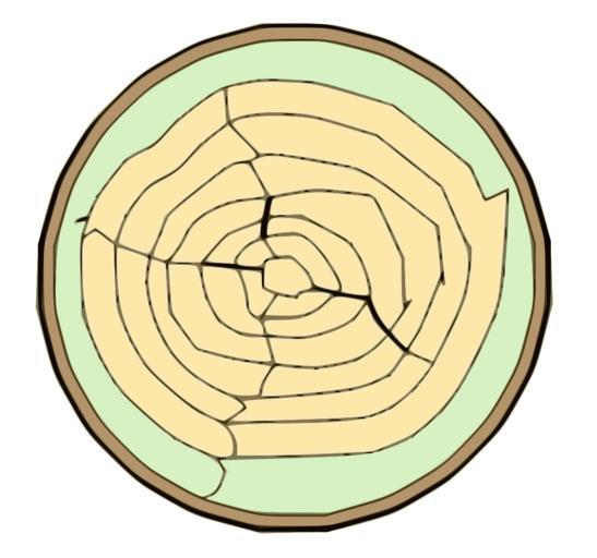 Keywords: Holzfarbigkeit.svg de Darstellung eines Holzfehlers Vektorisiert von http //de wikipedia org/wiki/Datei Farbigkeit_Holz jpg Fujnky 2009-04-13 Cross sections of trees in art Wood-related graphics Plant stem diagrams Arboriculture illustrations |