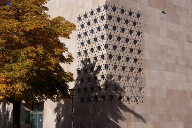 | Keywords: home building architecture synagogue ulm ulm synagogue community center weinhof community hall library kindergarten youth centre jerusalem window pattern stars of david star of david glass modern artwork judaism jewish jewish community center window tree autumn shadow |