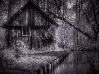 Keywords: home building facade hut old house old building broken lonely house lapsed run down leave bare forget old black and white