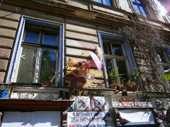 Keywords: home front window colorful housewife hausdeko deco graffiti facade appell plant decor screen pink umbrella kitsch cheesy