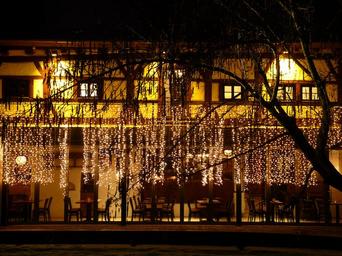 Keywords: home hotel cafe inn economy lighting light at night chairs sit eat gastronomy truss fachwerkhaus