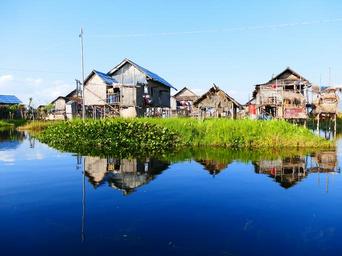 Keywords: home stalk water stilt house hut stilt houses village house on stilts lake waters vacation inlesee mirroring myanmar burma