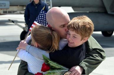 | Keywords: Homecoming celebration 140417-N-IS680-229.jpg en Cmdr Matt Thrasher executive officer of the Gunslingers of Strike Fighter Squadron VFA 105 hugs his children during a homecoming celebration at Naval Air Station Oceana Deployed as part of Harry S Truman Carrier Strike Group HST CSG CVW 3 squadrons participated in Operation Enduring Freedom and several multinational exercises in support of maritime security operations U S Navy photo by Mass Communication Specialist 2nd Class Alysia R Hernandez/Released 2014-04-17 Petty Officer 2nd Class Alysia Hernandez https //www dvidshub net/image/1259110 140417-N-IS680-229 2014-04-18 19 15 VIRGINIA BEACH VA US PD-USGov-Military-Navy People at Naval Air Station Oceana Operation Enduring Freedom Images from DoD uploaded by Fæ |