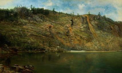 Keywords: homer martin painting oil on canvas artistic nature outside sky clouds landscape cliff buildings lake water reflections summer spring