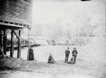 Keywords: Homerparkdam.jpg en The mill and dam on the Salt Fork at Homer Illinois This photo of the Coffeen family was taken in the mid-1880s Homer Historical Society Duvall 1886 Homer Historical Society PD-old Villages in Illinois