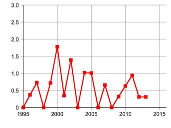 | Keywords: Homicide Rate in Iceland.svg en Homicide rate per 100 000 in Iceland Data taken from http //www indexmundi com/facts/iceland/homicide-rate 2016-08-17 own Delphi234 other versions current annually Generated with Wikimedia SVG Chart SVG Chart/box cc-zero Homicide rates Diagrams labelled with numbers only Crime in Iceland |
