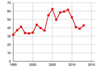 | Keywords: Homicide Rate in Jamaica.svg en Homicide rate per 100 000 in Jamaica Data taken from http //www indexmundi com/facts/jamaica/homicide-rate 2016-08-17 own Delphi234 other versions current annually Generated with Wikimedia SVG Chart SVG Chart/box cc-zero Homicide rates Diagrams labelled with numbers only |