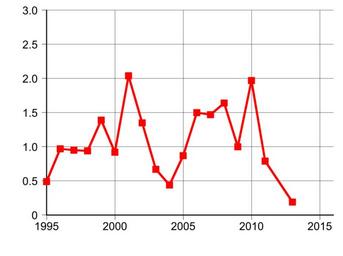 | Keywords: Homicide Rate in Luxembourg.svg en Homicide rate per 100 000 in Luxembourg Data taken from http //www indexmundi com/facts/luxembourg/homicide-rate 2016-08-17 own Delphi234 other versions current annually Generated with Wikimedia SVG Chart SVG Chart/box cc-zero Homicide rates Crime in Luxembourg Diagrams labelled with numbers only |
