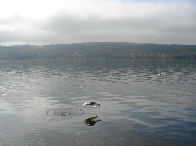 Keywords: Honeoye Lake.JPG en View of Honeoye Lake own Fijnlijn 2007-10-07 42 45 2 29 N 77 31 5 99 W region US Finger Lakes Larus delawarensis in flight Honeoye Lake