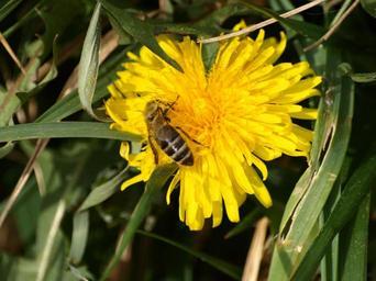 Keywords: honey bee dandelion blossom bloom bee flower close