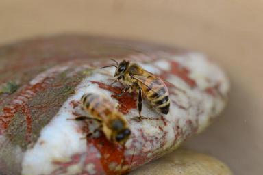 Keywords: honey bee water buckfast insect stone blood drink close-up macro detail