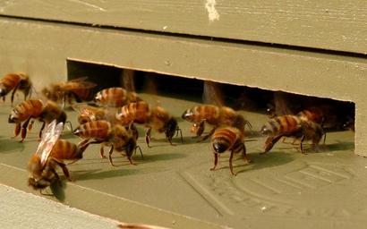 Keywords: honeybees insects beehive entrance colony hive box busy workers enter