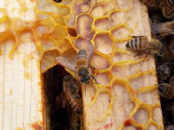 Keywords: honeycomb bees hexagons comb honeycombed insect hexagon pattern hive beehive honey beekeeping honey bees