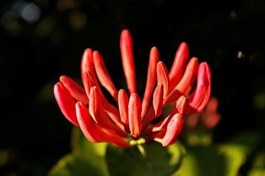 Keywords: honeysuckle creeper plant climber nature entwine flora blossom bloom summer orange garden garden design