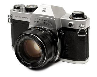 | Keywords: Honeywell-Pentax-Spotmatic.jpg en A Honeywell Pentax Spotmatic IIA SLR camera Shown here with a Asahi Super-Takumar F/1 4 50mm lens that has yellowed own Evan-Amos 2010-09-05 User Evan-Amos/EABanner User Evan-Amos/A700 Pentax Spotmatic II Taken with Sony DSLR-A700 Super-Multi-Coated Takumar 50mm F1 4 |
