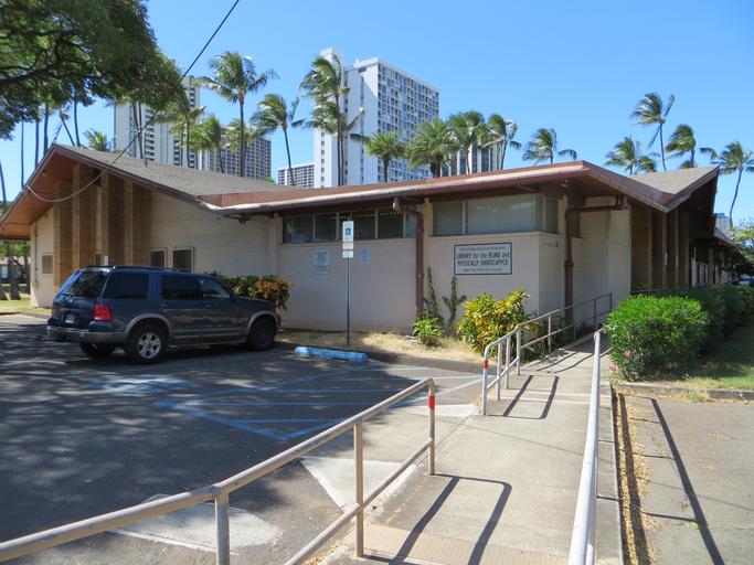 | Keywords: Honolulu-Library-for-Blind&Handicapped.JPG en Waikiki-Kapahulu Library for the Blind and Physically Handicapped 402 Kapahulu Ave Honolulu HI USA 2016-02-11 13 54 17 own Joel Bradshaw other versions 21 27486 -157 81667166667 cc-zero Hawaii State Public Library System Government buildings in Honolulu Hawaii Buildings in Waikiki Libraries for people with visual impairment | ||||