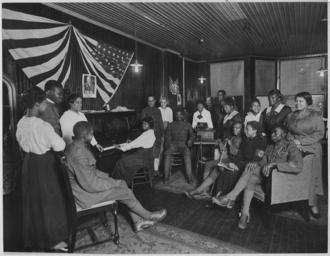 | Keywords: Honoring men about to leave. (African American) women open a club for their men in the service, New . . . - NARA - 533535.tif Scope and content The full caption for this item is as follows Honoring men about to leave African American women open a club for their men in the service Newark New Jersey General notes Use War and Conflict Number 656 when ordering a reproduction or requesting information about this image 533535 Local identifier 165-WW-127 49 War Department 1789 - 09/18/1947 Still Picture Records Section Special Media Archives Services Division NWCS-S National Archives at College Park 8601 Adelphi Road College Park MD 20740-6001 1917 - ca 1919 Record group Record Group 165 Records of the War Department General and Special Staffs 1860 - 1952 Record group ARC 494 American Unofficial Collection of World War I Photographs compiled 1917 - 1918 Series ARC 533461 File unit File unit ARC Variant control numbers NAIL Control Number NWDNS-165-WW-127 49 yes Other versions NARA-cooperation PD-USGov New Jersey in the 1910s African American military history Groups of African Americans World War I homefront in the United States African American soldiers Port Newark “Elizabeth Marine Terminal Doughboys |