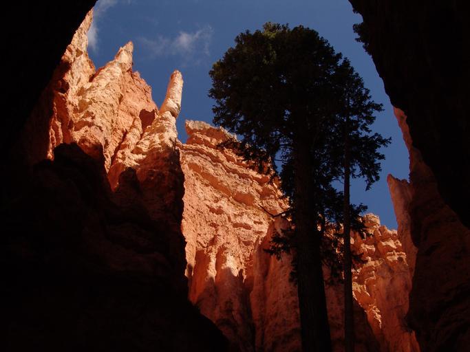 Keywords: hoodoos bryce canyon bryce canyon national park sandstone hoodoo erosion erosion forms landscape national park rocks utah orange scenery framed natural nature hike hiking outdoors tree sunlit shadow shadow play formations