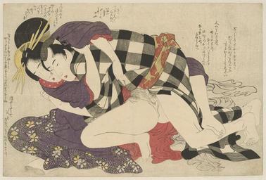 | Keywords: Hoogeplaatste courtisane met klant-Rijksmuseum RP-P-2006-274.jpeg accession number RP-P-2006-274 Creator Kitagawa Utamaro credit line nl Hoogeplaatste courtisane oiran in paarse kimono de liefde bedrijvend met klant in zwart-wit geblokt gewaad Linksonder onder de kimono van de vrouw een stapeltje tissues Zevende van dertien prenten uit het album Negai no itoguchi ook wel vertaald met The prelude to desire Label Line Kitagawa Utamaro 1753 - 1806 1799 kleurenhoutsnede; lijnblok in zwart met kleurblokken Collection prenten; Japan collectie blad Height mm 253 blad Width mm 383 exhibition history 2013-2014 Sex and Humour in Japanese Art 1600-1900 The British Museum Londen 2008-2008 Kunst op papier Rijksmuseum Amsterdam Amsterdam 2007-2007 Zomertentoonstelling 2007 CODA Cultuur onder Dak Apeldoorn Apeldoorn Institution Rijksmuseum paper object history Acquisition 2006 object type prent PD-US PD-old-100 Data and photography rights All data and all images made available through the API are either in the public domain or are subject to a CC0 license https //www rijksmuseum nl/en/api/terms-and-conditions-of-use cc-zero place of creation Japan G Luijten 'Erotiek uit het depot Japans voorlichtingsmateriaal' Oog 2 2008 nr 2 p 88 89 afb G Luijten 'Onfatsoenlijk' Oog 0 2006 p 120 121 afb http //www rijksmuseum nl/collectie/RP-P-2006-274 http //hdl handle net/10934/RM0001 COLLECT 438518 handle Hoogeplaatste courtisane met klant Uploaded with GWToolset Rijksmuseum RP-P-2006-274 http //www rijksmuseum nl/media/assets/RP-P-2006-274 Images uploaded by Fæ Images from the Rijksmuseum Japanese 18th-century prints in the Rijksmuseum Amsterdam |