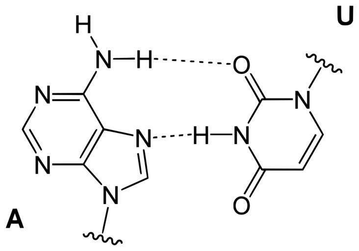 Keywords: Hoogsteen base pair AU reverse.svg en reverse Hoogsteen base pair adenine uracil AU de reverses Hoogsteen-Basenpaar Adenin Uracil AU own Yikrazuul 5 11 08 DNA chemical structures Base pairing