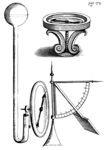 Keywords: Hooke Sprat Weatherinstruments.png en Wheel-barometer hygrometer and wind gauge de Radbarometer Hygrometer und Windmesser A Method of Making a History of the Weather In Thomas Sprat The history of the Royal Society of London for the improving of natural knowledge J Martyn London 1667 Robert Hooke 1663 PD-old-100 Robert Hooke |