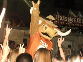 Keywords: Hookemhornsmaskot.JPG da Hook 'em Horns er håndbevægelsen for UT own Alisonnitsche Cc-zero Hook'em mascot 2009 Texas Longhorns football team