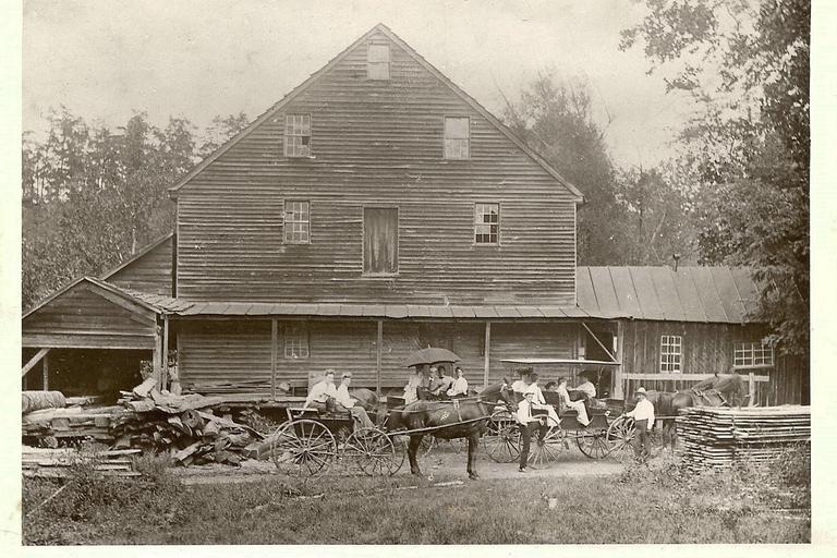 Keywords: Hooks Mill 1903.jpg en Hooks Mills West Virginia 1903 -- Saw and lunmber mill waterpower on left; grain ground on imported stones from France; post office on the right Flour ground from wheat at the mill stored on the second floor hay stored on the third floor Henson Hook the mill owner dressed in whote shirt with hand on front wheel of wagon Capon Bridge Museum Roberta Munske Author 1903 Author owns the image Author's possession PD-old Hooks Mills West Virginia Sawmills in the United States Flour mills in the United States West Virginia in the 1900s Wooden buildings in West Virginia Black and white photographs of West Virginia |