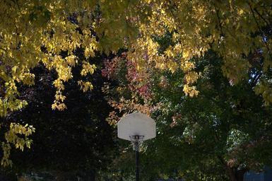 Keywords: hoop basket basketball still leaves fall color trees autumn branches backboard