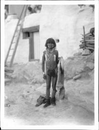 | Keywords: Hopi Snake priest at the pueblo of Walpi, Arizona, ca.1897 (CHS-4651).jpg en <br> Hopi Snake priest at the pueblo of Walpi Arizona ca 1897 Photograph of a Hopi Snake priest at the pueblo of Walpi Arizona ca 1897 He wears a loin cloth moccasins several necklaces and a bracelet His chest and face are decorated with white paint or dried mud He holds an animal pelt in his left hand He stands before a rocky wall near an adobe dwelling with an exterior ladder A wood pile is visible at right Call number CHS-4651 Legacy record ID chs-m16975; USC-1-1-1-13888 Photographer James George Wharton Filename CHS-4651 Coverage date circa 1897 Part of collection California Historical Society Collection 1860-1960 Type images Geographic subject city or populated place Walpi Repository name USC Libraries Special Collections Accession number 4651 Microfiche number 1-170- Archival file chs_Volume97/CHS-4651 tiff Part of subcollection Title Insurance and Trust and C C Pierce Photography Collection 1860-1960 Repository address Doheny Memorial Library Los Angeles CA 90089-0189 Geographic subject country USA Format aacr2 3 photographs glass photonegative photoprints b w ; 22 x 17 cm 21 x 26 cm Rights Digitally reproduced by the USC Digital Library; From the California Historical Society Collection at the University of Southern California Subject adlf tribal areas Project USC Repository email specol usc edu Identifying number unidentified no James-317 Contributing entity California Historical Society Date created circa 1897 Publisher of the digital version University of Southern California Libraries Format aat photographic prints; photographs Geographic subject state Arizona Subject file heading Indians -- Hopi -- Snake Dance Geographic coordinates -110 397217 35 832218 Format glass plate negatives Access conditions Send requests to address or e-mail given Phone 213 821-2366; fax 213 740-2343 Geographic subject county Navajo Subject lcsh Indians of North America; Hopi Indians; Rites and ceremonies; Men Subject Hopi Indians circa 1897 date created George Wharton James 1858 1923 http //digitallibrary usc edu/cdm/ref/collection/p15799coll65/id/16894 PD-old-70-1923 Images from USC Digital Library uploaded by Fæ Photographs by George Wharton James California Historical Society Collection 1860-1960 Glass plate negatives Hopi men |