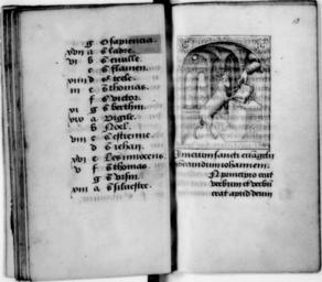 | Keywords: Horae ad usum Bituricensem p19.jpeg en Pages of the Horae ad usum Bituricensem Book of hours of Berry written in the 16th century It shows the second half of December and the first page of extracts of the gospel View 19 of the scans of the book on Gallica Ursin Ursinus whos feast day is in the martyrology of Ado the 9th November is mentioned at the end of December BNF Paris lat 1427 Gallica ark /12148/btv1b90680221/f19 item author 1501 “1600 16th-century works in France Books of Hours Berry region Christian saints Christian calendars 16th-century calendars Saint Ursin Lambs in art Illuminated manuscripts in the Bibliothèque nationale de France PD-old-100 |