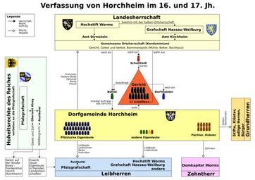 | Keywords: Horchheim Verfassung im 16. und 17. Jh.svg en Constitution of Horchheim near Worms in the 16th and 17th century de Verfassung von Horchheim bei Worms im 16 und 17 Jahrhundert own PMScigne 2014-10-09 Quellen 1 Alois Seiler Das Weistum der Dörfer Roxheim Bobenheim Mörsch Horchheim Weinsheim und Wiesoppenheim in Der Wormsgau Bd 2 Heft 5 1941 S 297-300 2 Hermann Schmitt Geschichte von Horchheim Weinsheim und Wies-Oppenheim Worms 1910 3 Sigrid Schmitt Territorialstaat und Gemeinde im kurpfälzischen Oberamt Alzey vom 14 bis zum Anfang des 17 Jh Stuttgart 1992 4 Rudolf Fendler Geleitstraßen und Postlinien vor der Französischen Revolution in Willi Alter Hg Pfalzatlas Textband II 1972 S 703-732 Worms-Horchheim Cc-zero |