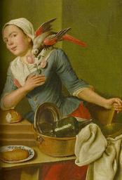 | Keywords: Horemans, Peter Jakob - Küchenstillleben mit weiblicher Figur und Papagei - 1760 (Detail Person).jpg Artwork Creator Peter Jakob Horemans detail 1760 oil canvas 36 5 × 44 5 cm Staatsgalerie im Neuen Schloss Bayreuth Zweiggalerie der Bayerischen Staatsgemäldesammlungen EG object history Kurfürstliche Galerie München exhibition history credit line Own scan enlarged accession number 2990 book Bayerische Staatsgemäldesammlungen Malerei des Spätbarock Ostfildern Hatje Cantz 2007 ISBN 978-3-7757-1936-0 vergriffen S 225 Other versions <gallery>Horemans _Peter_Jakob_-_Küchenstillleben_mit_weiblicher_Figur_und_Papagei_-_1760 jpg</gallery> PD-old-100 Peter Jakob Horemans 1760 Kuchenstillleben mit weiblicher Figur und Papagei Detail Flemish paintings in the Staatsgalerie im Neuen Schloss Bayreuth 1760 genre paintings 1760 oil on canvas paintings 1760 paintings in Germany 18th-century oil on canvas paintings in Germany 18th-century oil paintings of women Details of paintings Females with birds in art Meats in art Paintings of kitchens Paintings with signatures Parrots in paintings Paintings with years of production artist People in kitchens in art People with parrots in art People with Psittaciformes 18th-century women looking at viewer in art Tableware in art Scans by Mattes Scanned with HP PhotoSmart C5280 Location not applicable Work by Mattes 2012 |