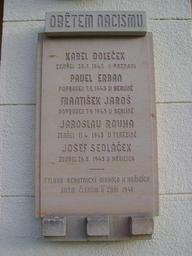 | Keywords: Hořice-deska-Obětem-nacismu-Koruna.jpg Hořice Jičín District Hořice en Jičín District the Czech Republic <br />Victims of Nazism Hořice cs okres Jičín <br /> Text Obětem nacismu Karel Doleček zemřel 25 5 1943 v Poznani Pavel Erban popraven 7 9 1943 v Berlíně František Jaroš popraven 7 9 1943 v Berlíně Jaroslav Rouha zemřel 11 4 1945 v Terezíně Josef Sedláček zemřel 26 5 1945 v Hořicích Tylovo ochotnické divadlo v Hořicích svým členům v září 1946 own Jirka23 2011-07-10 Cc-zero World War II plaques in Hořice Plaques referencing 1943 Plaques referencing 1945 Plaques installed in 1946 |