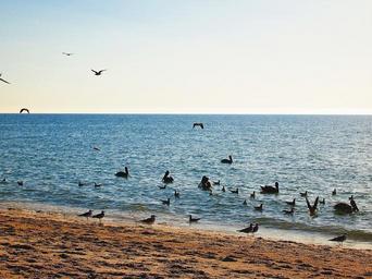 Keywords: horizon birds ocean landscape blue nature summer sky silhouette water scene sea view sun flock beautiful light outdoor flying beauty natural sunlight outdoors beach scenic day seagulls pelican scenery coastline sand shoreline