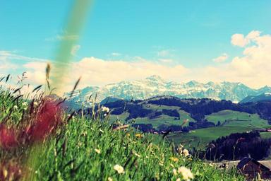 Keywords: horizon mountains meadow alpine outlook view