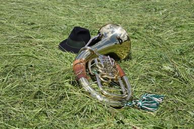 Keywords: horn tuba music blowers gloss shine orchestra instrument costume brass band brass instrument blow mirroring musical instrument sound regional nature agriculture meadow fields grass landscape reported idyll