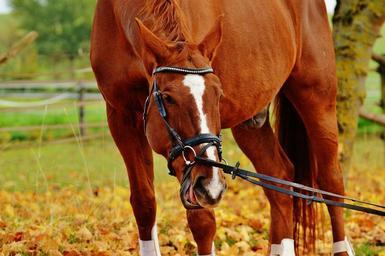 Keywords: horse animal ride reiterhof brown coupling meadow leaves autumn colorful