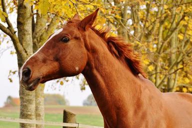 Keywords: horse animal ride reiterhof brown coupling meadow leaves autumn colorful