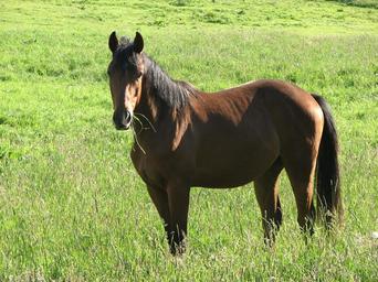 Keywords: horse brown meadow pasture grass green mane