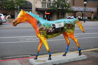 Keywords: horse colorful statue art sidewalk architecture tourism street city outdoors symbol pattern detail design decorative street art artistic abstract decoration style creative modern texture trendy decor bright composition color