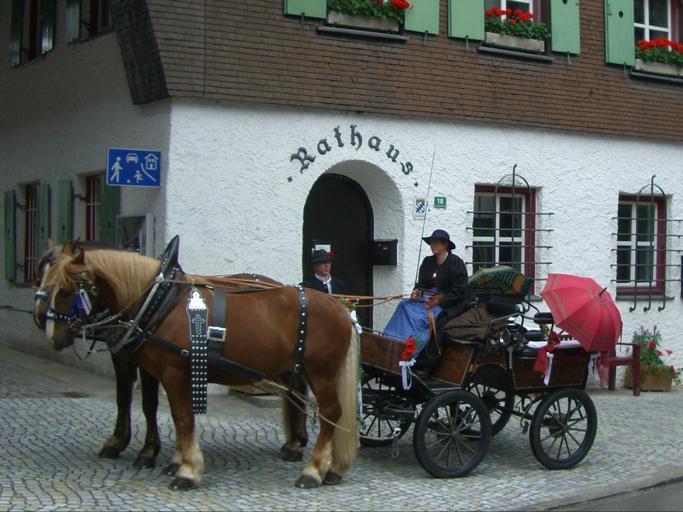 Keywords: horse drawn carriage horse ross coach coachman team wedding nesselwang allgäu town hall wait voltage