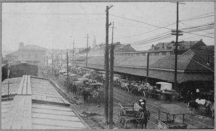 | Keywords: Horse-drawn wagons line the narrow street in front of New Orleans' French Market, 01-1915 - NARA - 521050.tif Local identifier 83-G-3121 Department of Agriculture Bureau of Agricultural Economics Division of Economic Information ca 1922 - ca 1953 Still Picture Records Section Special Media Archives Services Division NWCS-S National Archives at College Park 8601 Adelphi Road College Park MD 20740-6001 01/1915 Record group Record Group 83 Records of the Bureau of Agricultural Economics 1876 - 1959 Record group ARC 412 Photographic Prints Documenting Programs and Activities of the Bureau of Agricultural Economics and Predecessor Agencies compiled ca 1922 - ca 1947 documenting the period ca 1911 - ca 1947 Series ARC 521048 Variant control numbers NAIL Control Number NWDNS-83-G-3121<br /> Select List Identifier AMCITY 39 General notes Scope and content File unit File unit ARC yes Other versions <gallery> File Horse-drawn_wagons_line_the_narrow_street_in_front_of_New_Orleans'_French_Market _01-1915_-_NARA_-_521050 tif tif File Horse-drawn_wagons_line_the_narrow_street_in_front_of_New_Orleans'_French_Market _01-1915_-_NARA_-_521050 jpg jpg File French Market wagons New Orleans 1915 jpg File French Market Horse Wagons January 1915 jpg </gallery> NARA-cooperation PD-USGov Horse-drawn wagons line the narrow street in front of New Orleans' French Market January 1915 NARA TIF images with categorized JPGs |