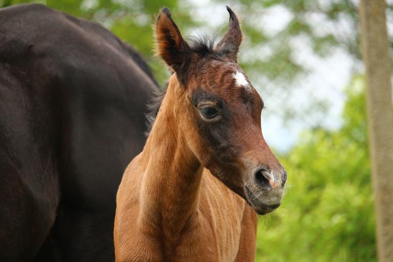 Keywords: horse foal suckling thoroughbred arabian brown mold tail mare pasture horse head